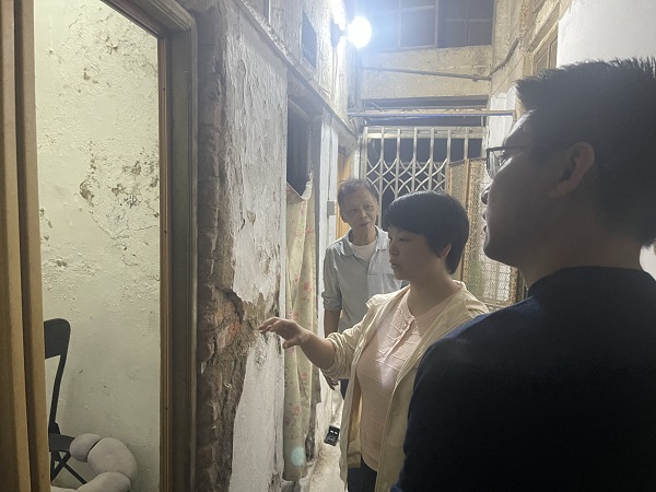 接到反映后,区人大代表叶海斌、徐英立即响应,与社区工作人员一同上门实地察看。经了解,该厕所原为三户共用,现仅剩刘叔一人使用,台阶高、地面滑,对老人构成严重安全隐患。代表们当场向刘叔详细介绍了适老化改造政策,安抚其情绪,并承诺将尽快协调解决。